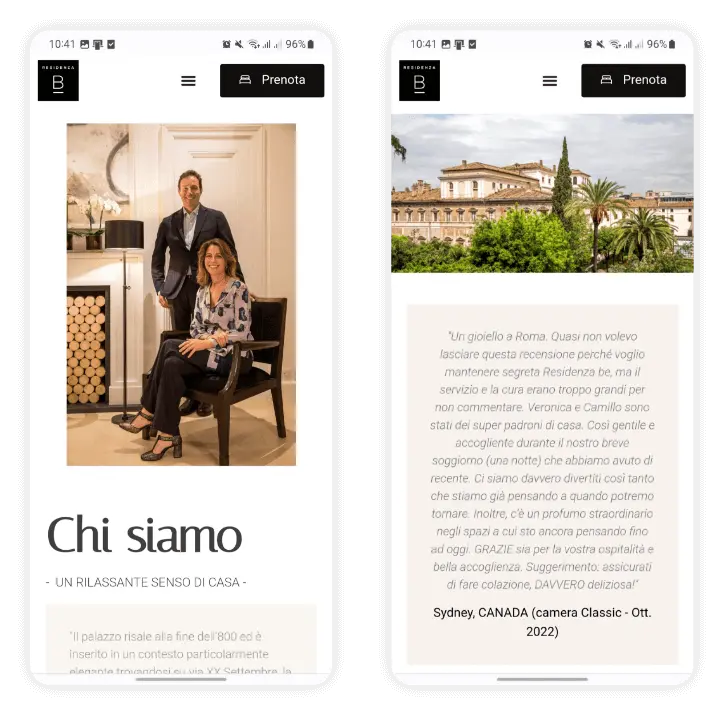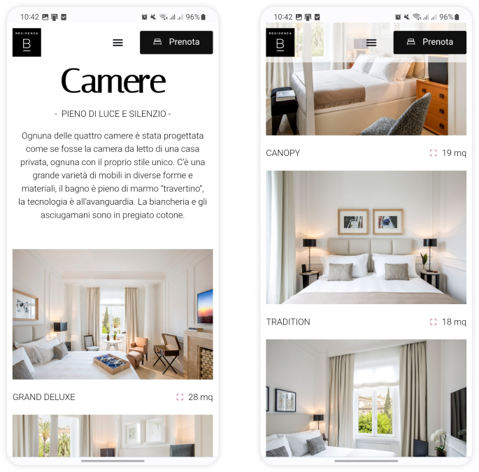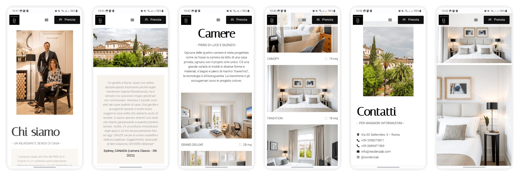 Creare un sito web che riflettesse l’eleganza e l’atmosfera unica di Residenza B, fornendo agli utenti un’esperienza online coinvolgente e informativa che li invogliasse a prenotare un soggiorno.