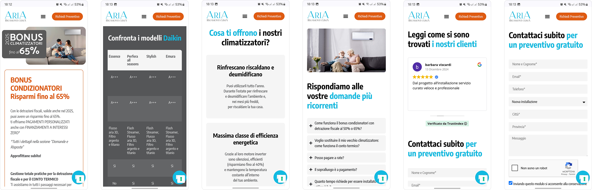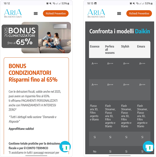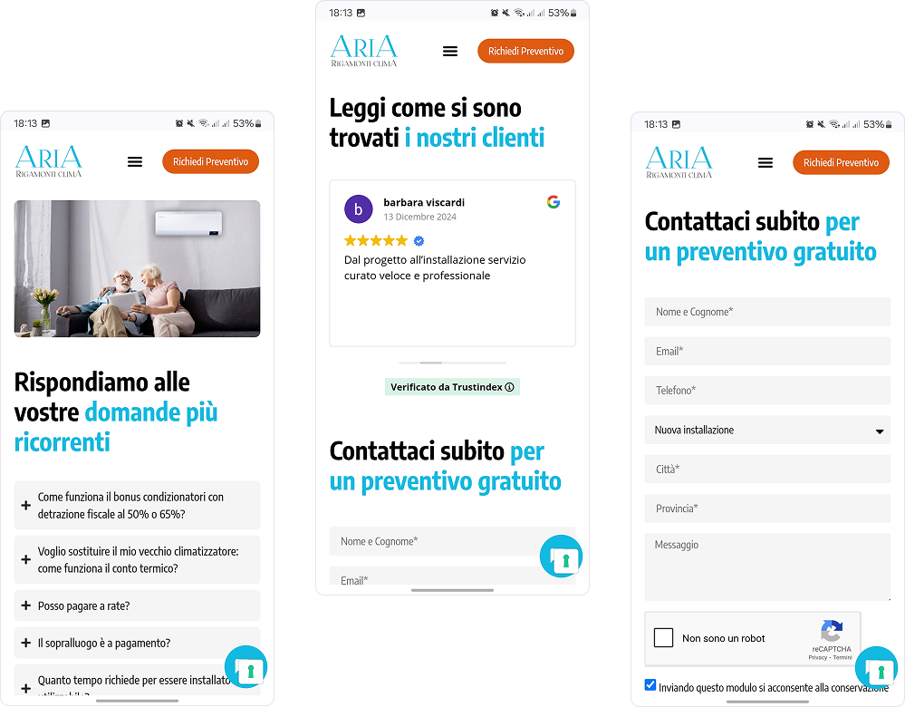 Messaggio chiaro e persuasivo: I contenuti della landing page sono stati studiati per comunicare in modo efficace i valori e i vantaggi offerti da Aria Rigamonti, utilizzando un linguaggio chiaro, conciso e orientato alla conversione.