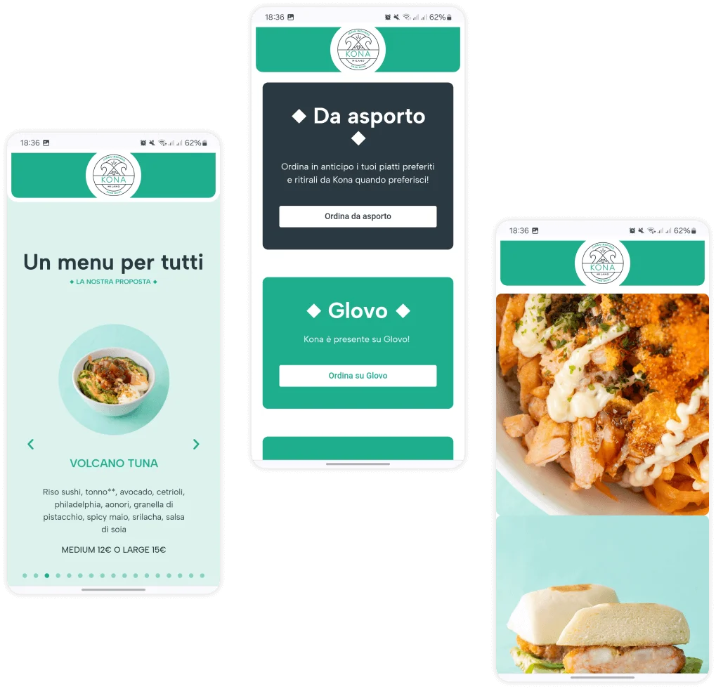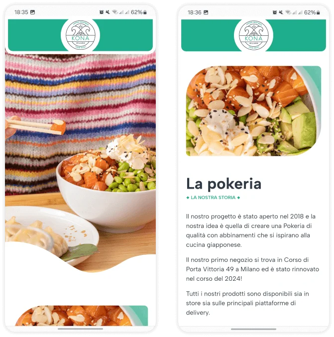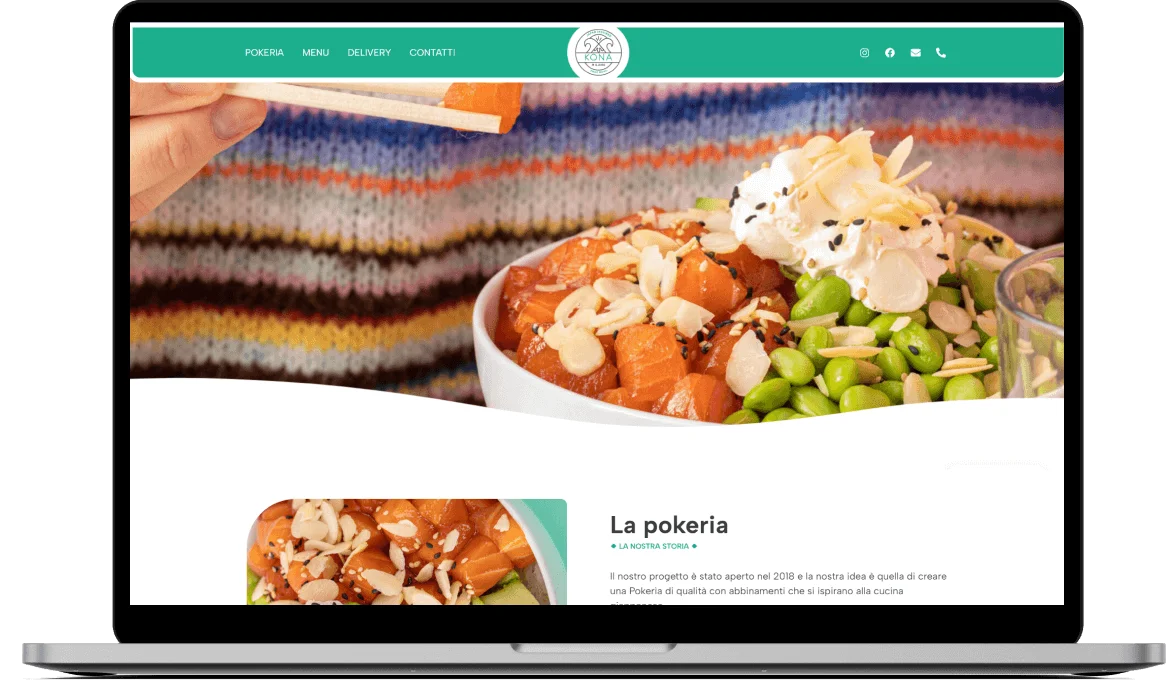 Creare una presenza online accattivante e funzionale che catturasse l’essenza esotica di Kona Milano, presentando in modo appetitoso il menu, l’atmosfera del locale e le informazioni di contatto, incoraggiando i visitatori a esplorare le opzioni di poke bowl e a effettuare ordini online o visitare il locale.